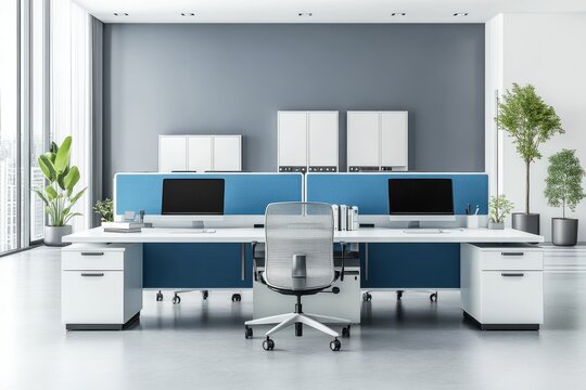 Empty work stations in a modern open space office