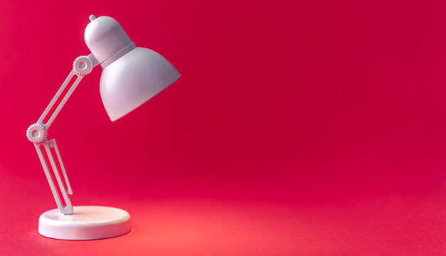 White table lamp on a Viva Magenta background, copy space.
