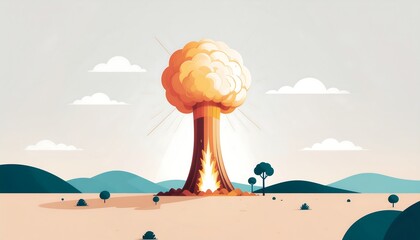 A cartoon desert with a large, bright mushroom cloud-shaped explosion and scattered vegetation