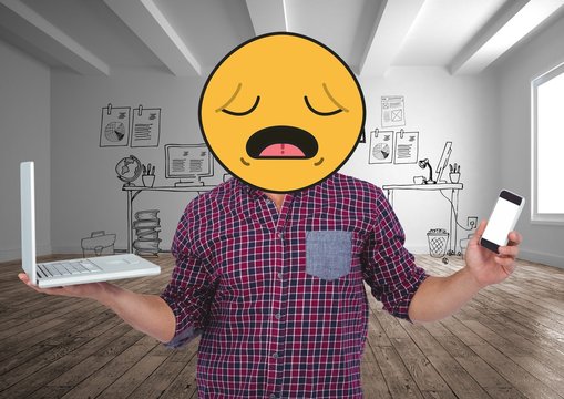 Desperate emoji with his job.