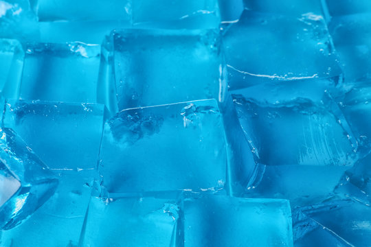 Blue jelly cubes as background, closeup view
