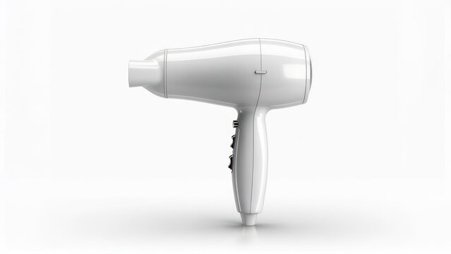 White hair dryer, angled view