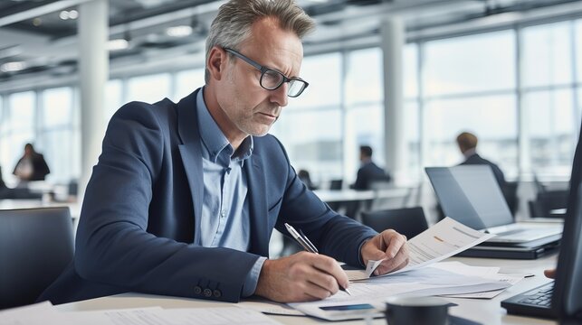 Detail oriented accountant expertly managing finances in a professional office setting