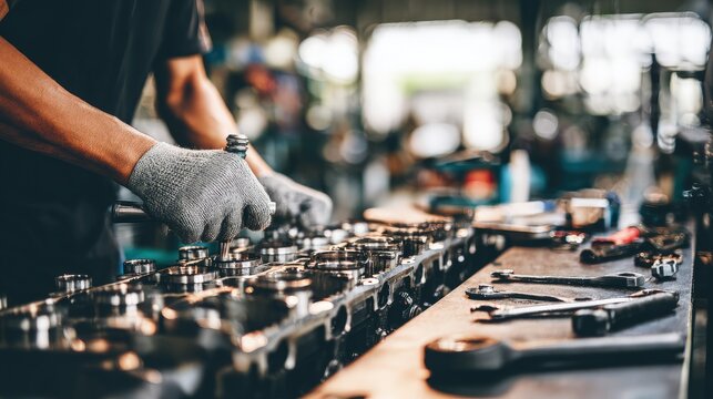 Mechanic Repairing Engine In Workshop
