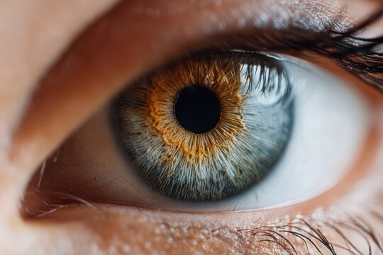 Macro close-up of hazel eye with detailed iris and eyelashes