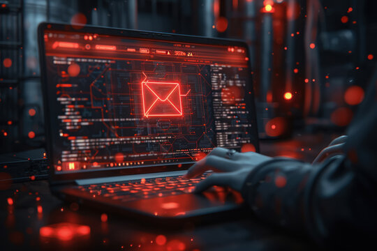 An email application on a laptop screen displaying a critical alert message from the systems antivirus software warning of detected email threats emphasizing the importance of protective software