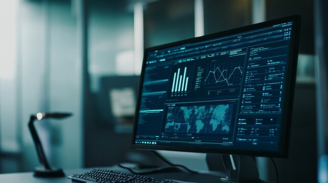 AI analyzing data analytics dashboard, detecting financial patterns, visualizing metrics, and generating insights for business decision-making and performance forecasting. Latch