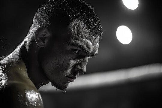Intense Boxer in Action: Portrait of a Focused Athlete in the Ring Training