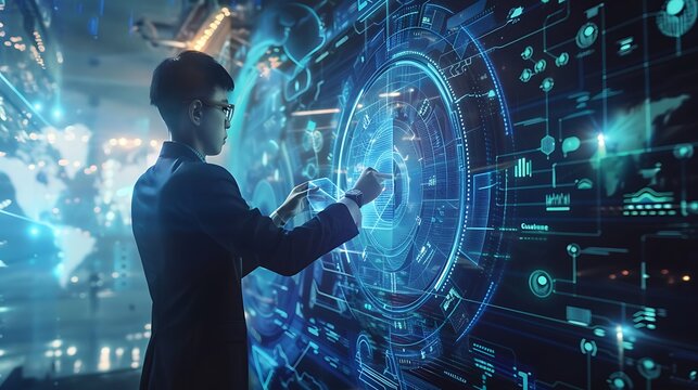 Businessman Touch Interacting With Navigating the Digital World Futuristic Technology.