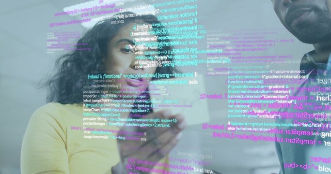 Developers Analyzing Code With Digital Overlay In Modern Office Images
