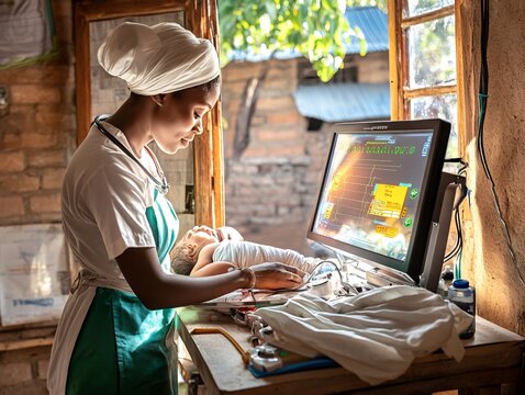 African Healthcare Worker Examining a Baby's Vital Signs.