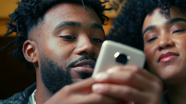 Couple relaxing at home interacting with technology