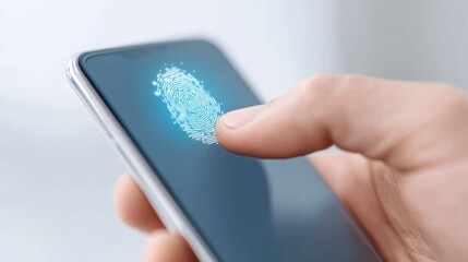 Digital Fingerprint: A close-up shot captures the essence of modern security, showcasing a fingertip interacting with a mobile device, its unique fingerprint illuminated on the screen.