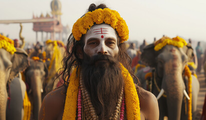 AI generator images of Holy men, Maha Kumbh Mela, the world's largest spiritual gathering Hundreds of thousands of Indians are among the hundreds of devotees who gather for this ancient tradition