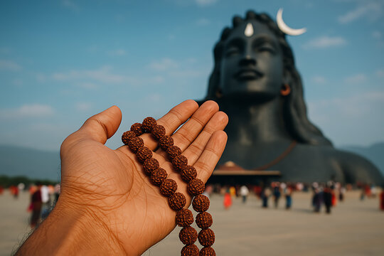 Mahadev blessing devotees under sky with rudraksha beads celebrating sawan shivratri and sawan purnima in divine spiritual environment of meditation and devotion