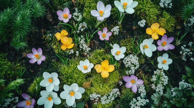 A vibrant bunch of purple flowers adorned with glistening water droplets. Perfect for adding a touch of beauty and freshness to any project