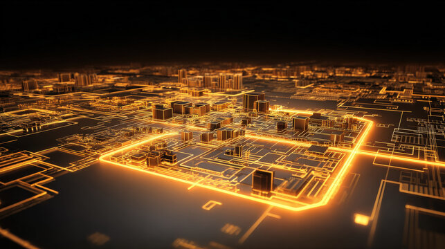 orange heat map overlay highlighting hotspots on circuit board tech diagnostic visualization illustration concept scene visual for commercial design use high detail quality stock image illustration