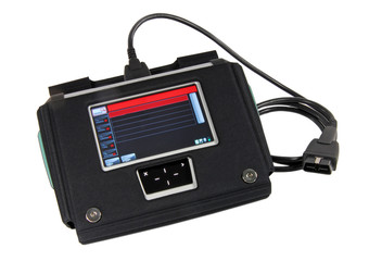 Auto mechanics use tablet computers with cutting-edge interactive diagnostic software to find faulty parts in the engine compartment.