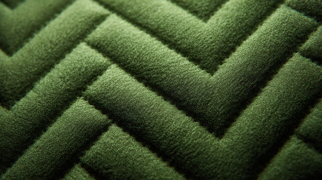 A detailed view of a green textile with a sophisticated geometric pattern