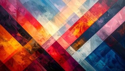 A vibrant abstract artwork showcasing diagonal bands of color. Thick brushstrokes create texture and depth in a dynamic arrangement