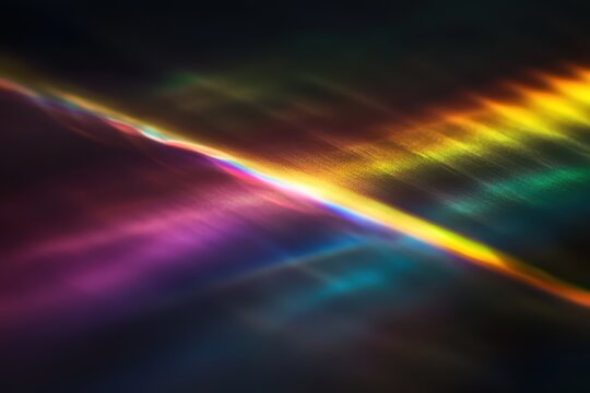 Vibrant rainbow light beam streaking across dark background with colorful streaks and blurry textures