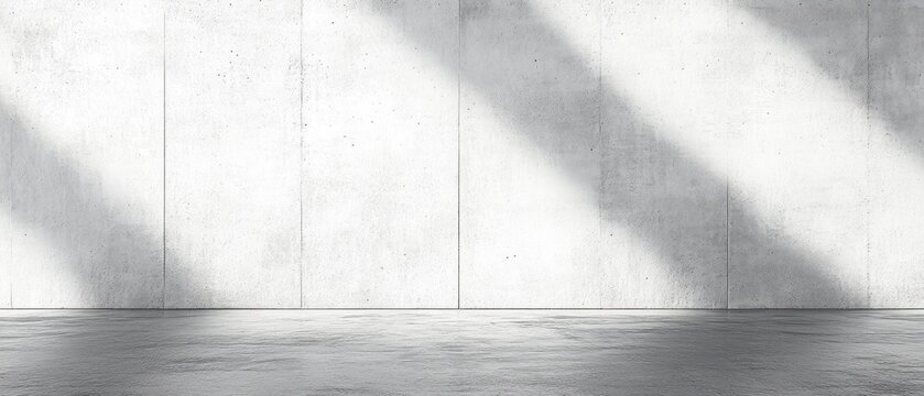 Empty industrial room with smooth concrete floor and textured concrete wall with shadows casting diagonal light patterns