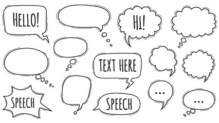 Variety of speech bubbles with a hand-drawn style offers creative communication space