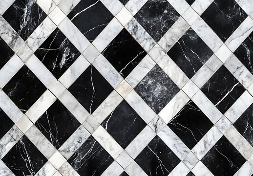 Black White Marble Checkered Floor Tile