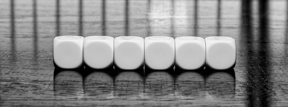 Concept of 6 blanked dices mockup to form a 6 letters words