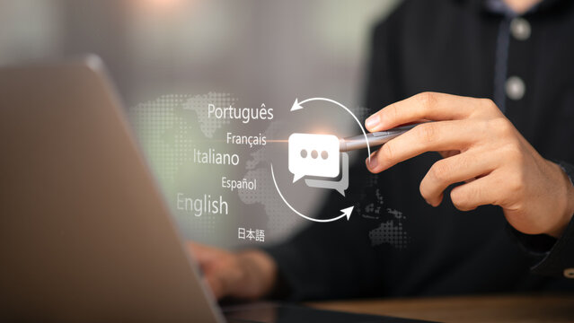 Concept of language translation application technology ,speaking different languages ​​around world ,Online translation service ,Application of AI technology ,Translator ,Foreign language courses