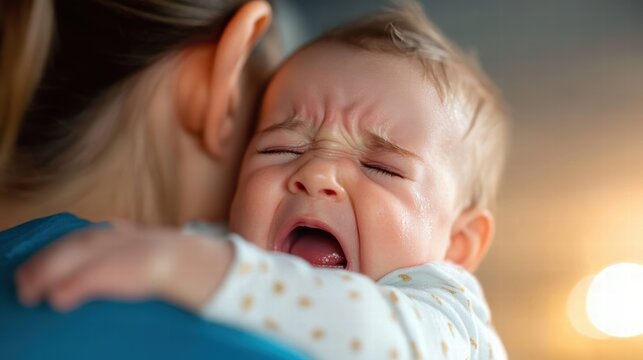 Young girl feeling sad and crying while her mother comforts her in the living room at home during a difficult moment
