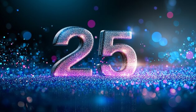 A Captivating Jubilee Celebration Silver Number 25 Surrounded by Stunning Bokeh Lights and Colors