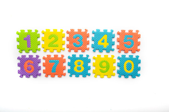 Close up of multicolored wooden numbers back to school abstract.