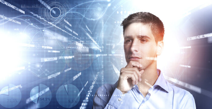 modern information data themes. blue code of binary information bit for ai, big data, files transmitted, online transaction and economic e-commerce website development.