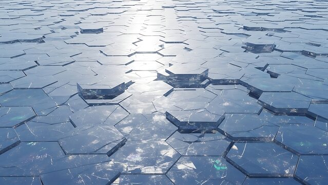 Windows‑style 4K wallpaper Abstract, futuristic background of hexagonal geometric shapes in cool blue, reflecting light.