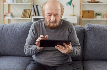 Middle-aged man enjoying time with digital tablet at home