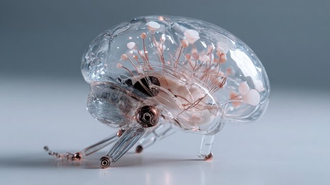 Digital Brain: A detailed representation of a digital brain with glowing components, representing a concept of technological progress and interconnectedness.