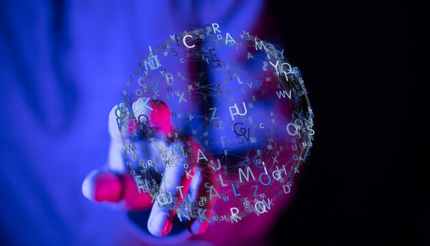 Floating digital numbers and alphabets on dark background
