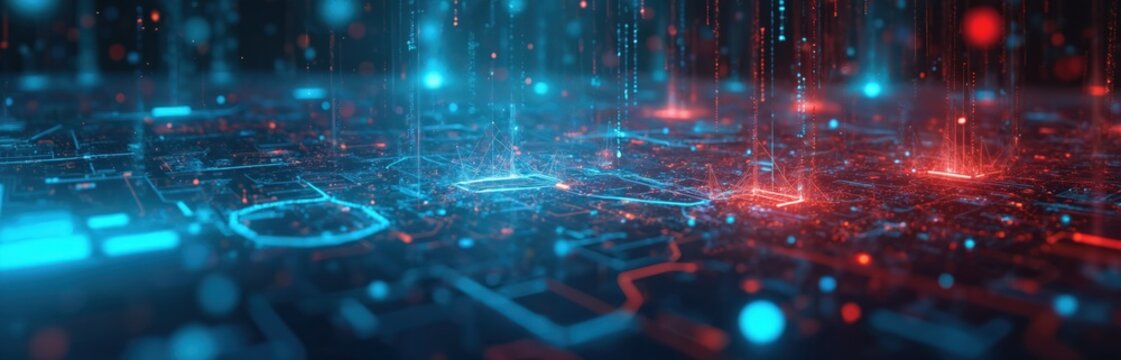 Abstract digital background featuring binary code and AI algorithms. Conceptual visualization of artificial intelligence, data processing, and technological innovation.