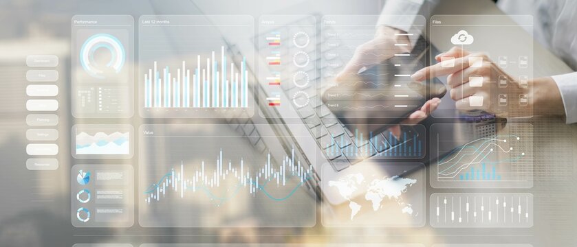Businessman analyst working with digital finance business data graph showing technology of investment strategy for perceptive financial business decision. Digital economic analysis technology concept.