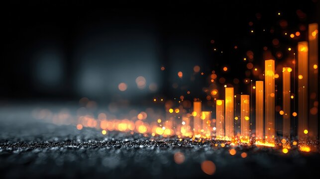 3D render, abstract digital background with glowing blue and orange dots forming a circular shape on a dark black backdrop Generative AI