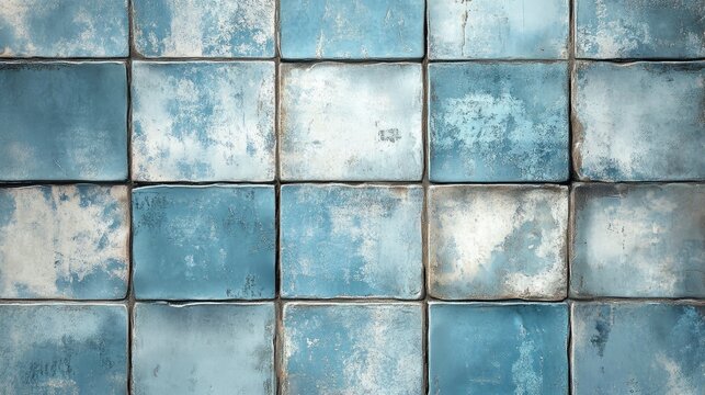 Blue vintage kitchen wall tiles texture for interior design or digital backdrop applications. Rustic style suitable for contemporary themes.