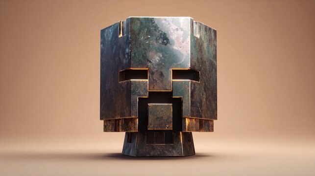 Abstract glowing core with dark metallic shell sci fi energy source concept