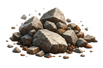 Pile of rocks and stones isolated on transparent background