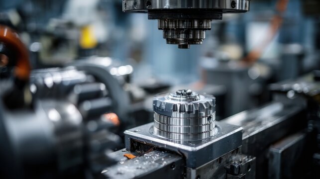 Cnc Milling Machine Cutting Metal Block Creating Precise Industrial Component
