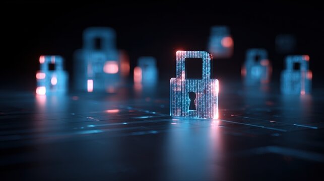 Digital Security Concept: Abstract Padlocks Illustrating Data Protection, Cybersecurity, and Information Safety in a Virtual Environment