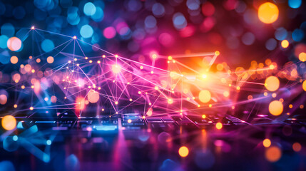 Digital data flow on road in concept of cyber global communication and coding with graphic creating vision of fast speed transfer to show agile digital transformation  disruptive innov : Generative AI