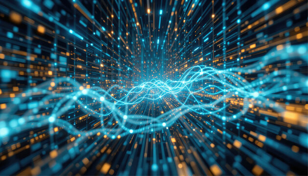 Abstract Digital Data Stream Flowing Through Cyberspace