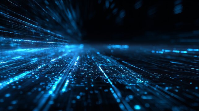 A dynamic representation of a digital data stream, this image features an abstract pattern of glowing binary code, conveying the continuous flow and speed of information in the digital age.