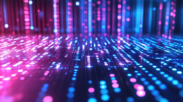 Abstract neon light streams with flowing binary code in cyberspace. Futuristic digital network, fast technology, secure communication, coding, innovation, modern design, vibrant colors, glowing energy